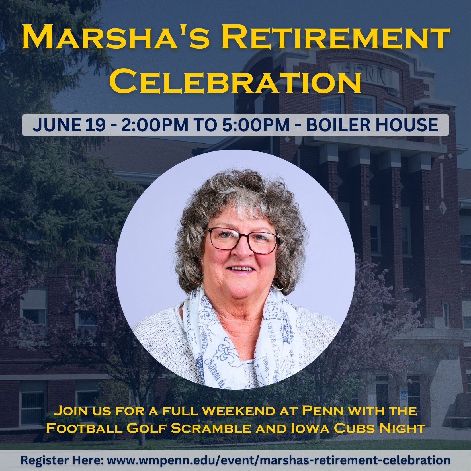 You can make a weekend of it, as June 19th is the same day as the football golf scramble. Come for that and then make your way to campus. Or join us the next day for William Penn Night at the Iowa Cubs.